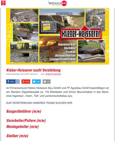 - Anzeige in der Stellenbörse auf www.HITRADIO-RTL.de